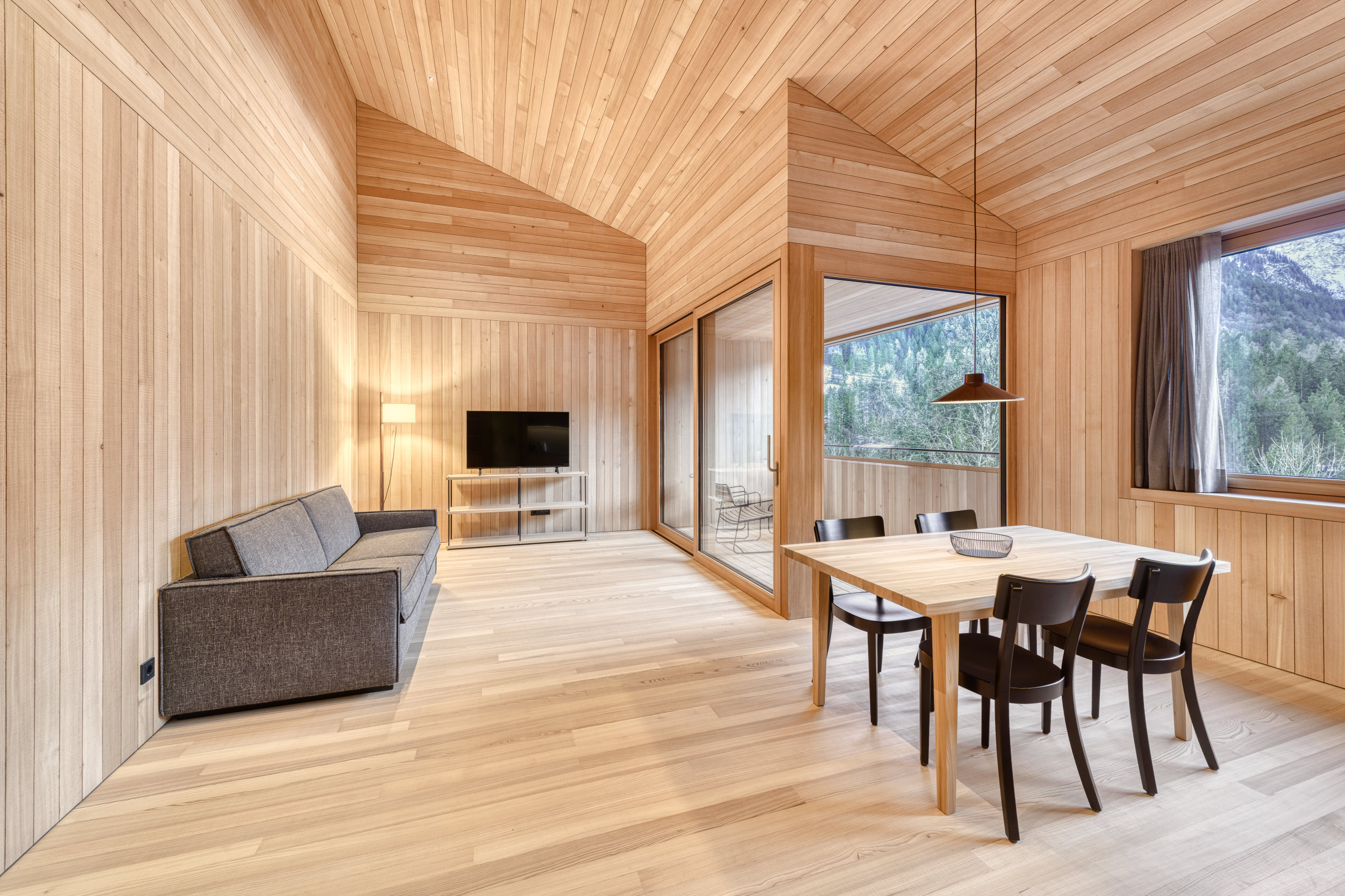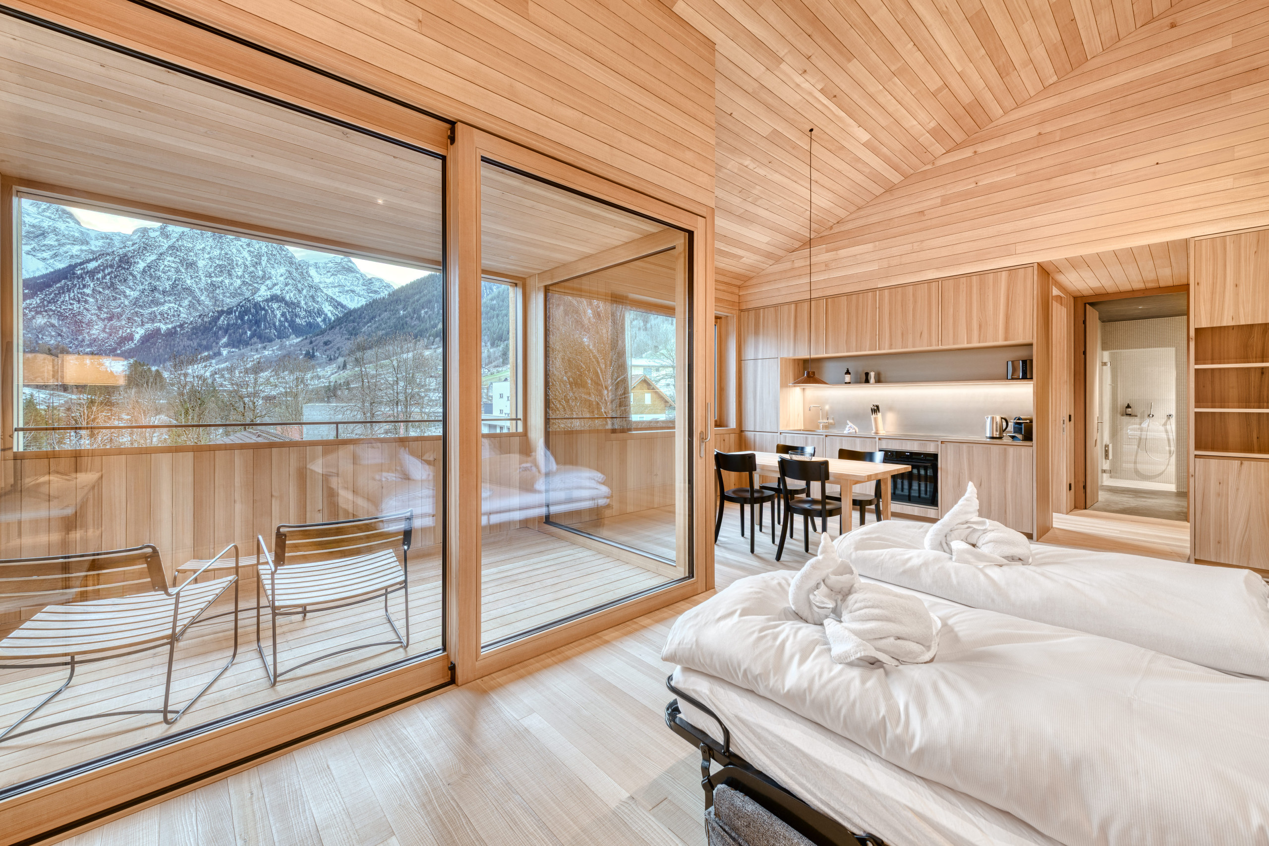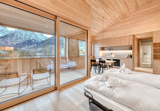 With 57 m² of living space, a double bed in the bedroom, a cosy living area with a sofa bed and a loggia with mountain views, everything is here that you need for a relaxing break. The private steam shower ensures relaxation - whenever you want.