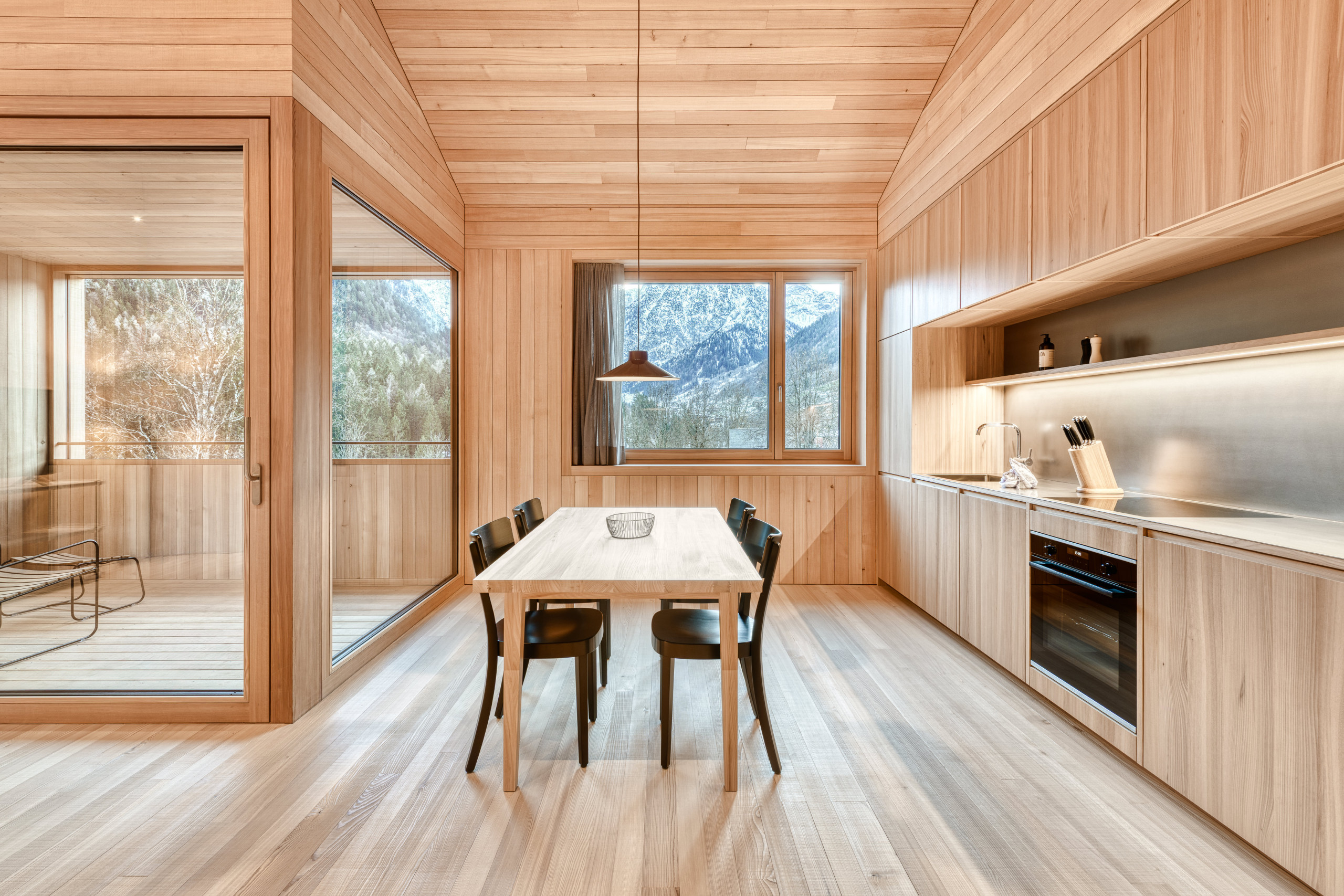 A fully equipped designer kitchen awaits you with a fridge, dishwasher, hob, oven, coffee machine (Nespresso), toaster and a kettle. The open dining room can accommodate up to seven people. The cozy living room invites you to linger and relax after a lovely day of skiing or a challenging mountain tour.