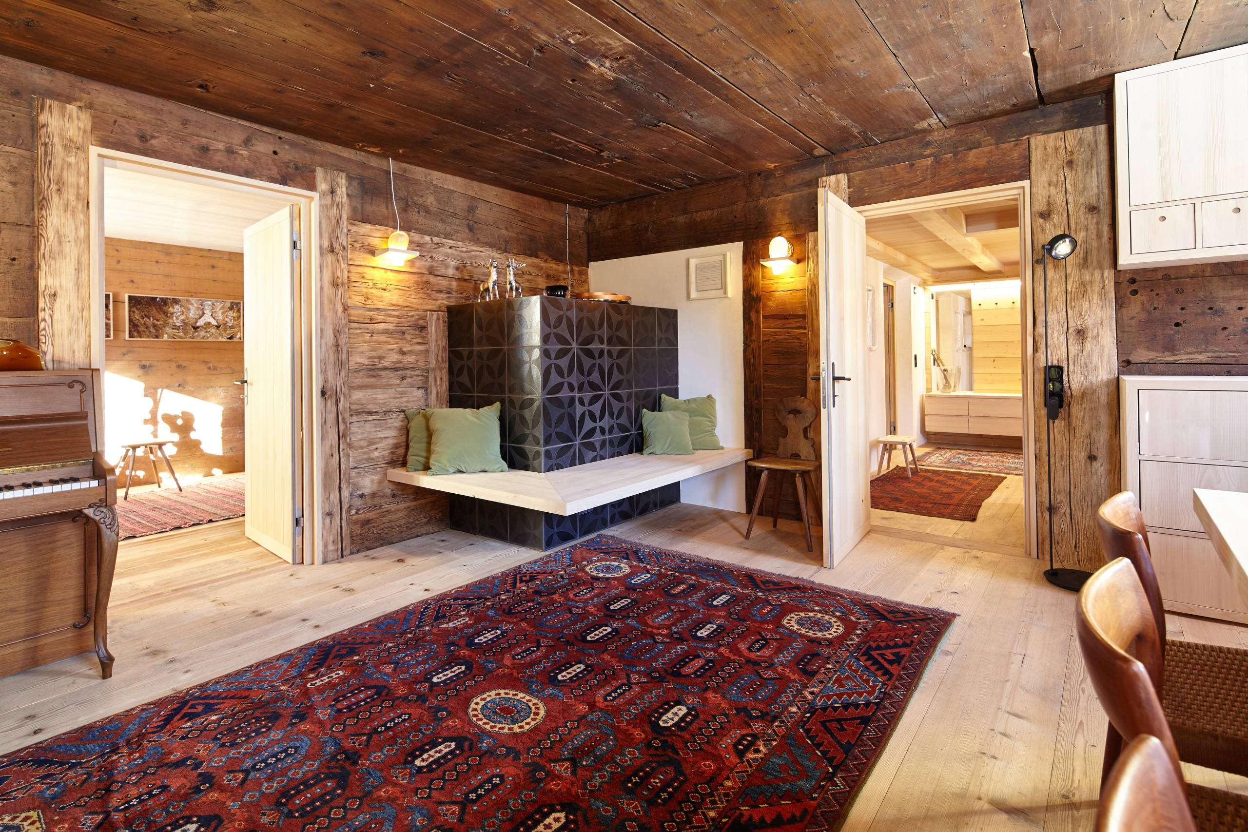 On 200 m² you will find space for up to eight people. Four stylishly designed bedrooms with large double beds and modern bathrooms, a spacious living room with an open fireplace and tiled stove as well as a cosy reading corner create comfortable retreat opportunities. The kitchen is fully equipped – from wine cooler to Thermomix – and if desired, you can have someone cook for you. Sound system, flat-screen TV and loving details such as a library or a separate dining room round off the comfort. A ski storage room and underground garage spaces are of course included.