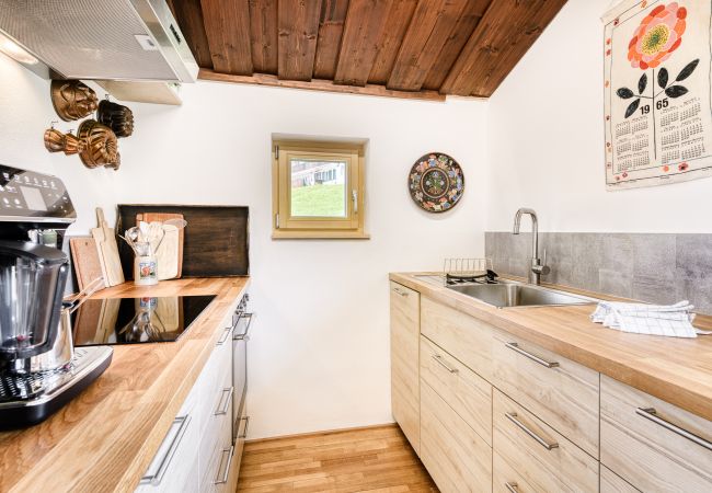 Spread across two lovingly furnished levels, you'll find a blend of rustic charm and modern comfort. On the ground floor, two cozy double rooms beckon for relaxation, alongside a modern, newly renovated bathroom that leaves nothing to be desired. A staircase leads to the upper floor where a spacious living area with an open kitchen awaits you. The kitchen is fully equipped, allowing for easy meal preparation. Another bedroom offers additional space for two people. The open fireplace in the living area provides warmth and coziness.