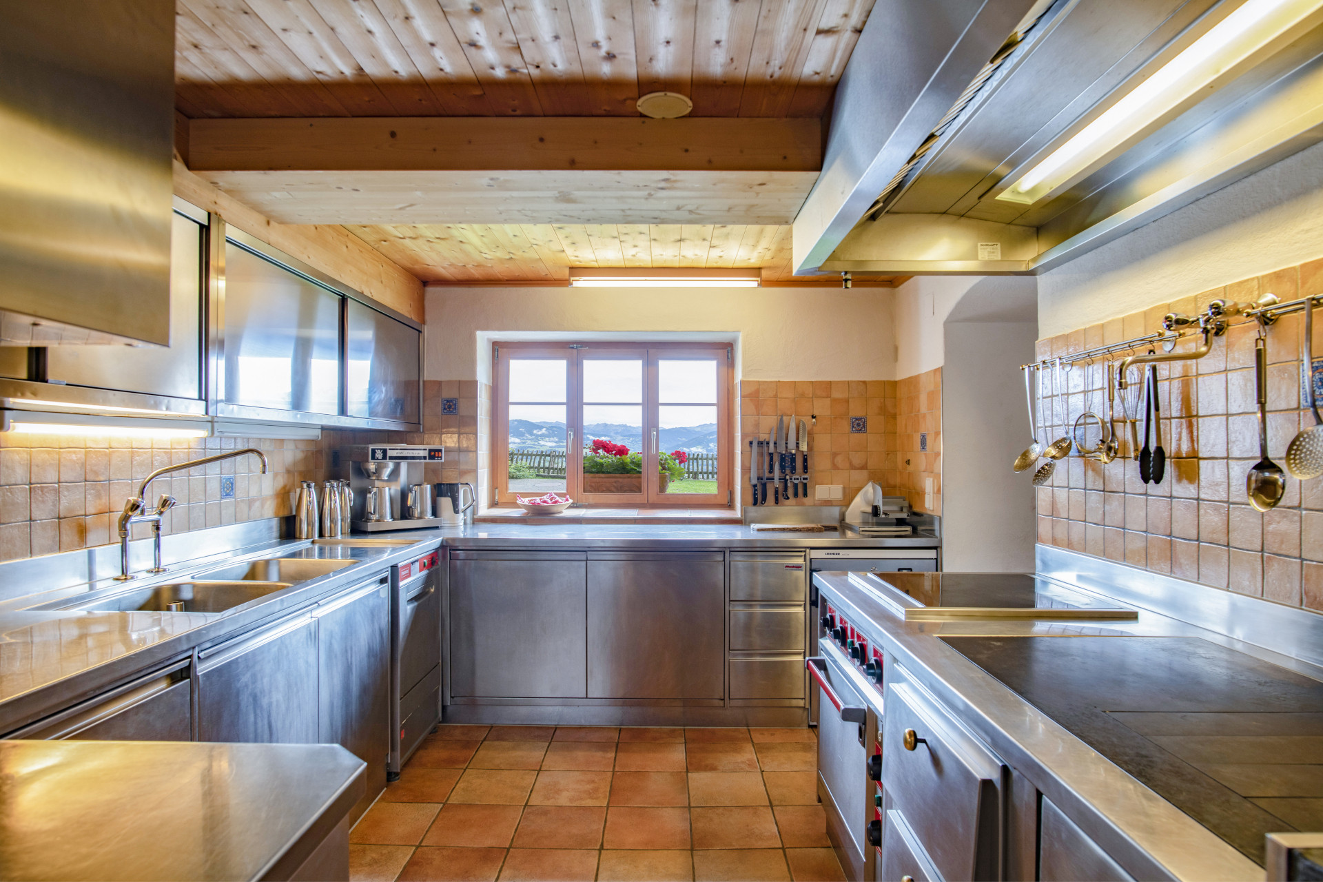 The professional kitchen is a dream for culinary enthusiasts, complete with a Nespresso machine, filter coffee machine, raclette and fondue set, large fridge, freezer, and even a wood-burning stove. Four bathrooms – including rain showers and a whirlpool tub – and several separate toilets ensure maximum comfort.