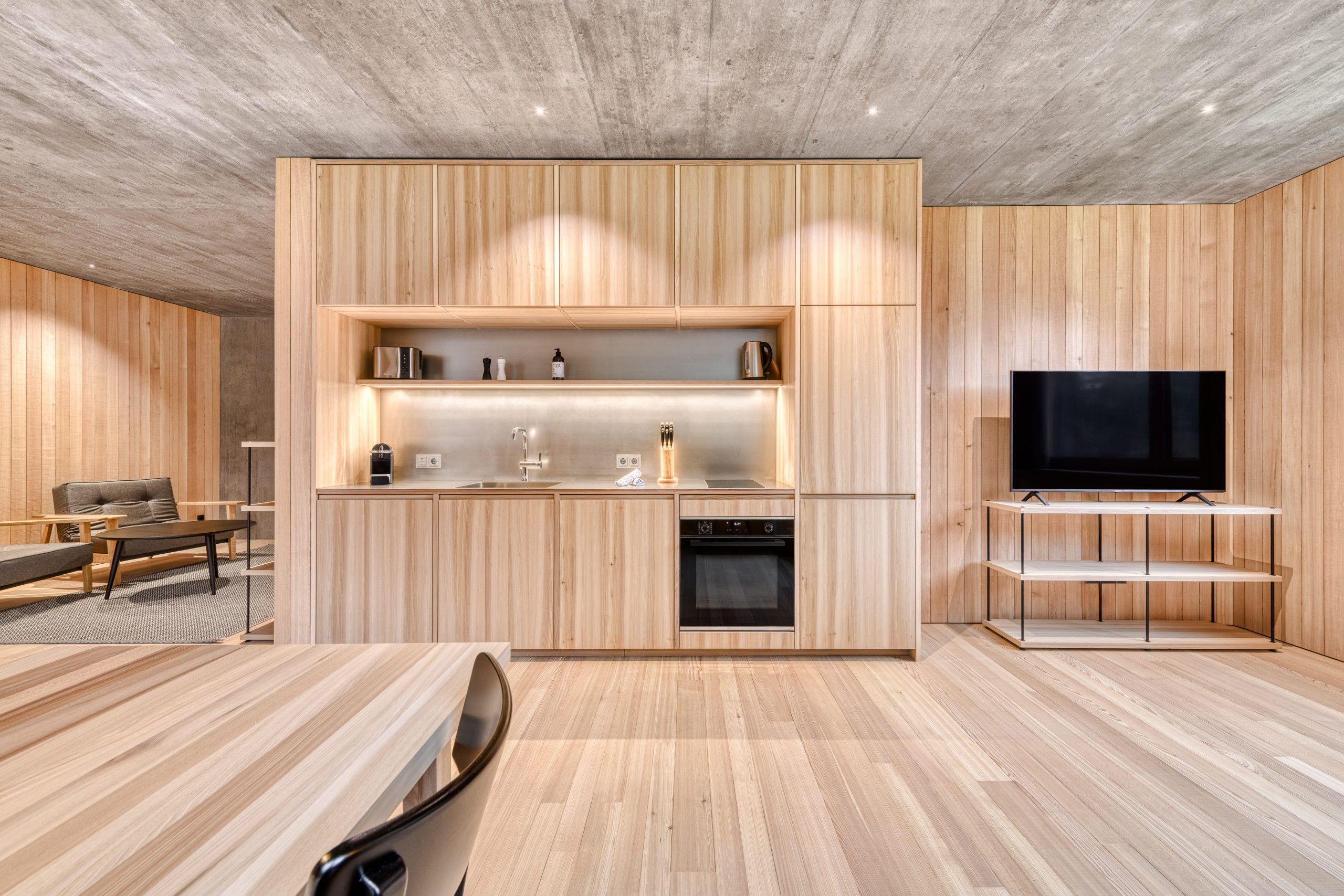 Een slaapkamer met een groot tweepersoonsbed, een elegant bad met regendouche en een open leefruimte met slaapbank (voor 1 volwassene of 1–2 kinderen) bieden veel ruimte voor gezamenlijke tijd. De volledig uitgeruste keuken met oven, vaatwasser en Nespresso-machine nodigt uit tot koken. WiFi, Smart Home, Flat-TV, een kluis. Parkeren kan in de ondergrondse parkeergarage of voor het huis, een oplaadstation voor elektrische voertuigen bevindt zich ook bij het huis. In de winter staat een skiruimte met schoenendroger tot uw beschikking en in de zomer is er in de ondergrondse parkeergarage een stallingsplaats voor de fietsen.