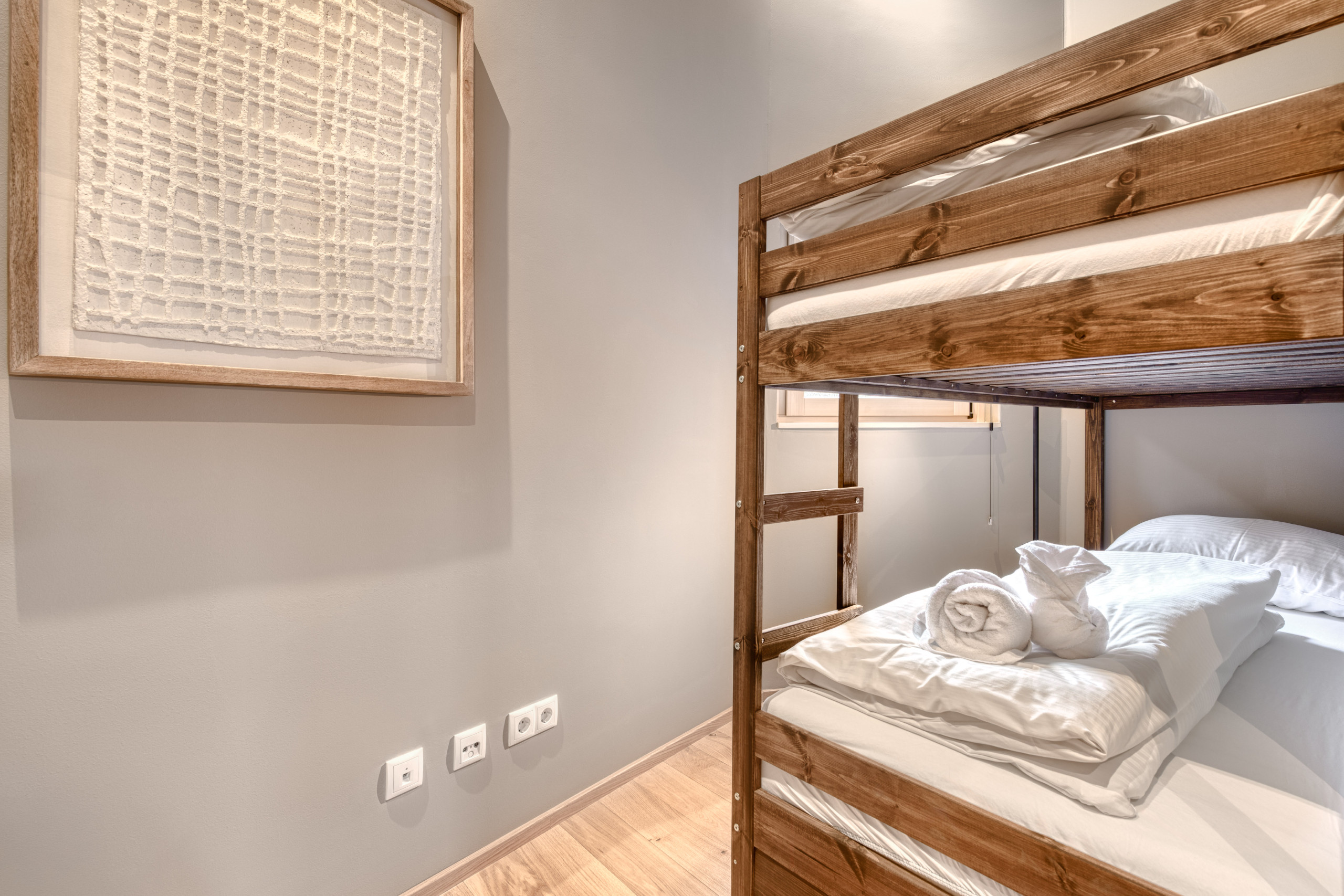 Met een oppervlakte van 87 m² beschikt Top 6 over drie slaapkamers (twee tweepersoonskamers en één kamer met stapelbed), ingericht met natuurlijke materialen en warme kleuren. De open leefruimte met open haard nodigt uit om te ontspannen. De lift brengt jullie comfortabel tot aan de penthouseverdieping, vanwaar jullie de suite betreden. Het balkon biedt een wijds uitzicht over het dal en de omliggende bergtoppen.