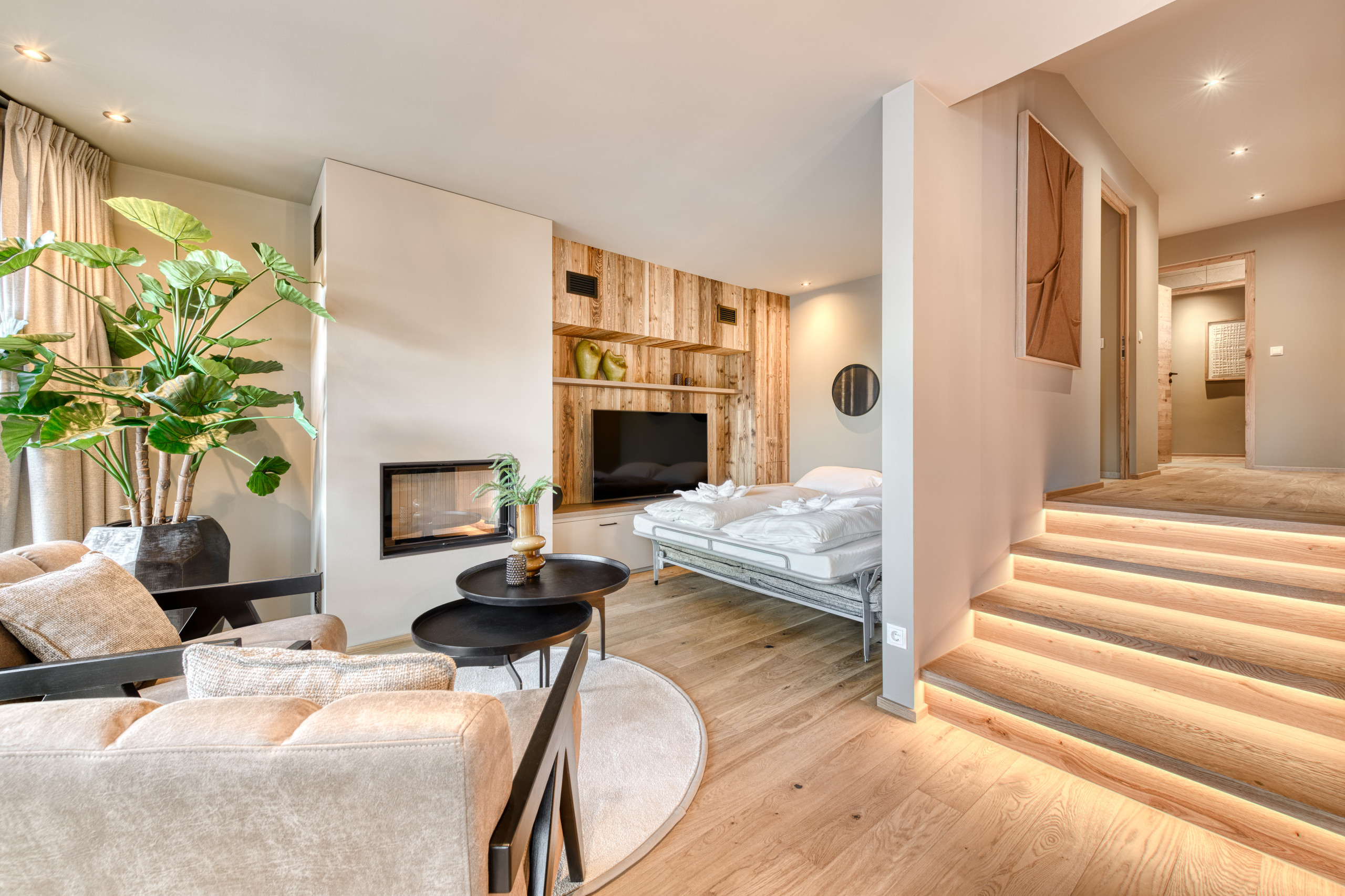 Penthouse-ligging, drie slaapkamers, een open haard en een panorama dat inspireert – Top 6 is een toevluchtsoord voor iedereen die op zoek is naar iets bijzonders. Hier wonen jullie niet alleen in de bergen – jullie zweven erboven.