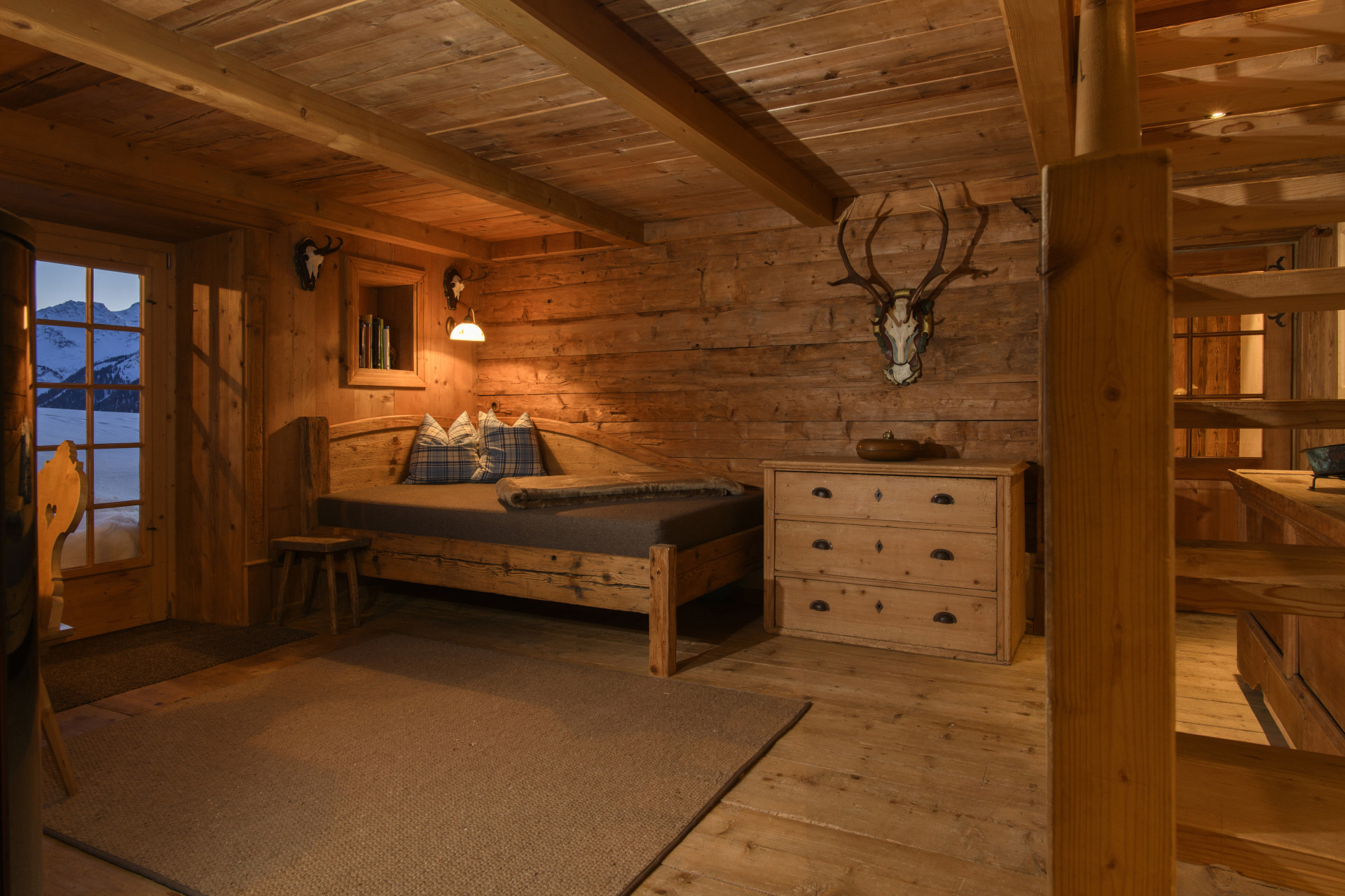 Het ruime zonnige balkon begeleidt u van's ochtends tot's avonds met licht en uitzicht. Het chalet staat voor zichzelf — ver weg van de drukte van de buren, midden in de natuur. De renovatie werd uitgevoerd met een scherp gevoel voor stijl en inhoud — voor een sfeer die lang meegaat.