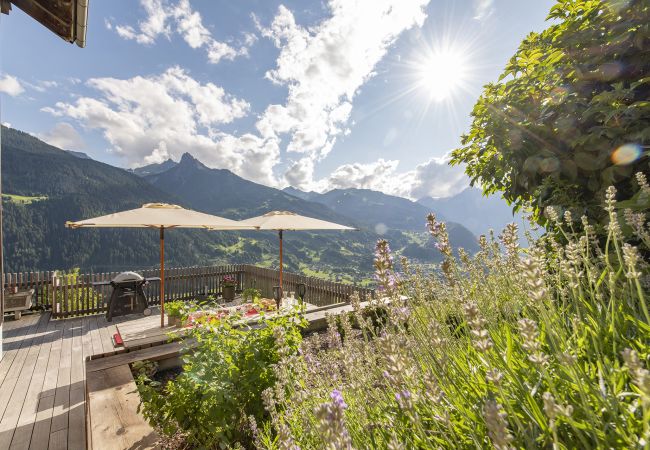 Hanglage mit Aussicht pur: Vom 70 m² großen Sonnendeck schaust du direkt ins Tal und auf die Bergspitzen. Schneeketten können im Winter nötig sein – aber du erreichst das Haus ganzjährig mit dem Auto. Der nächste Wanderweg startet quasi an der Haustür.