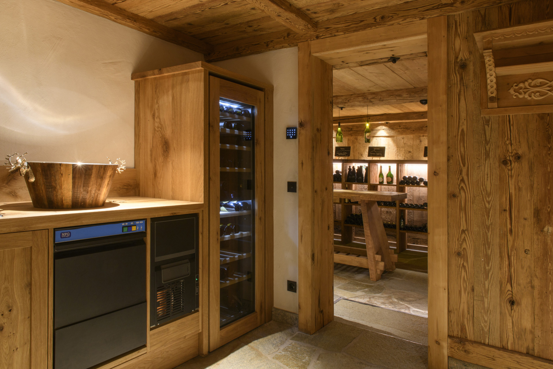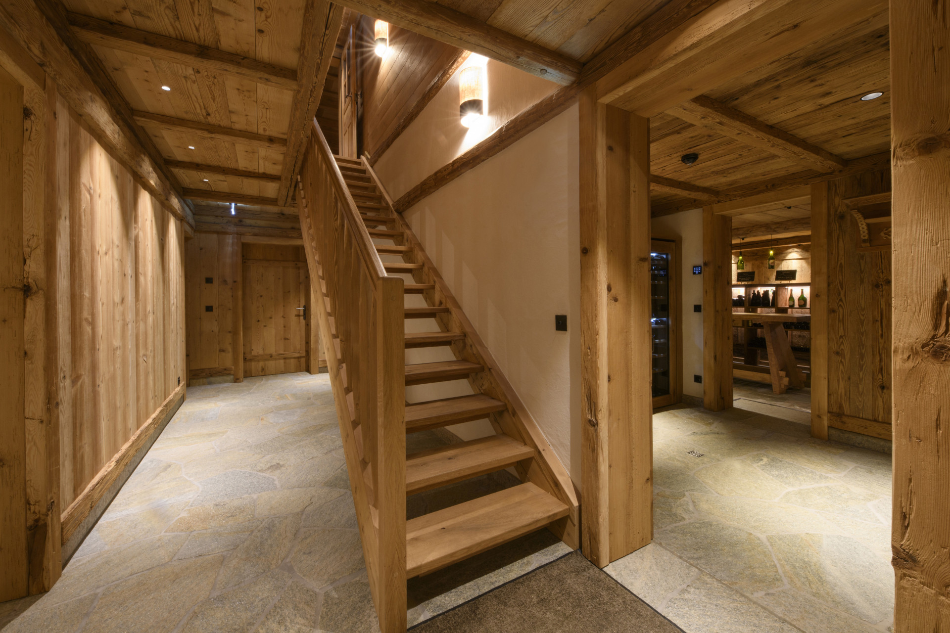 Mit großzügigen 200 m² Wohnfläche bietet das Panorama Deluxe Mountain Hideaway House Platz für bis zu 8 Personen. Drei gemütliche Zirbenzimmer mit Doppelbetten sowie ein zusätzliches Schlafzimmer mit Stockbett und Zustellbett sorgen für wohltuenden Schlaf. Der offene Wohn- und Essbereich mit Kaminofen und hochwertiger Küche bildet das Herzstück des Hauses. Für genussvolle Stunden steht euch ein exklusiver Weinkeller mit Stehtisch und Weinkühlschrank zur Verfügung.