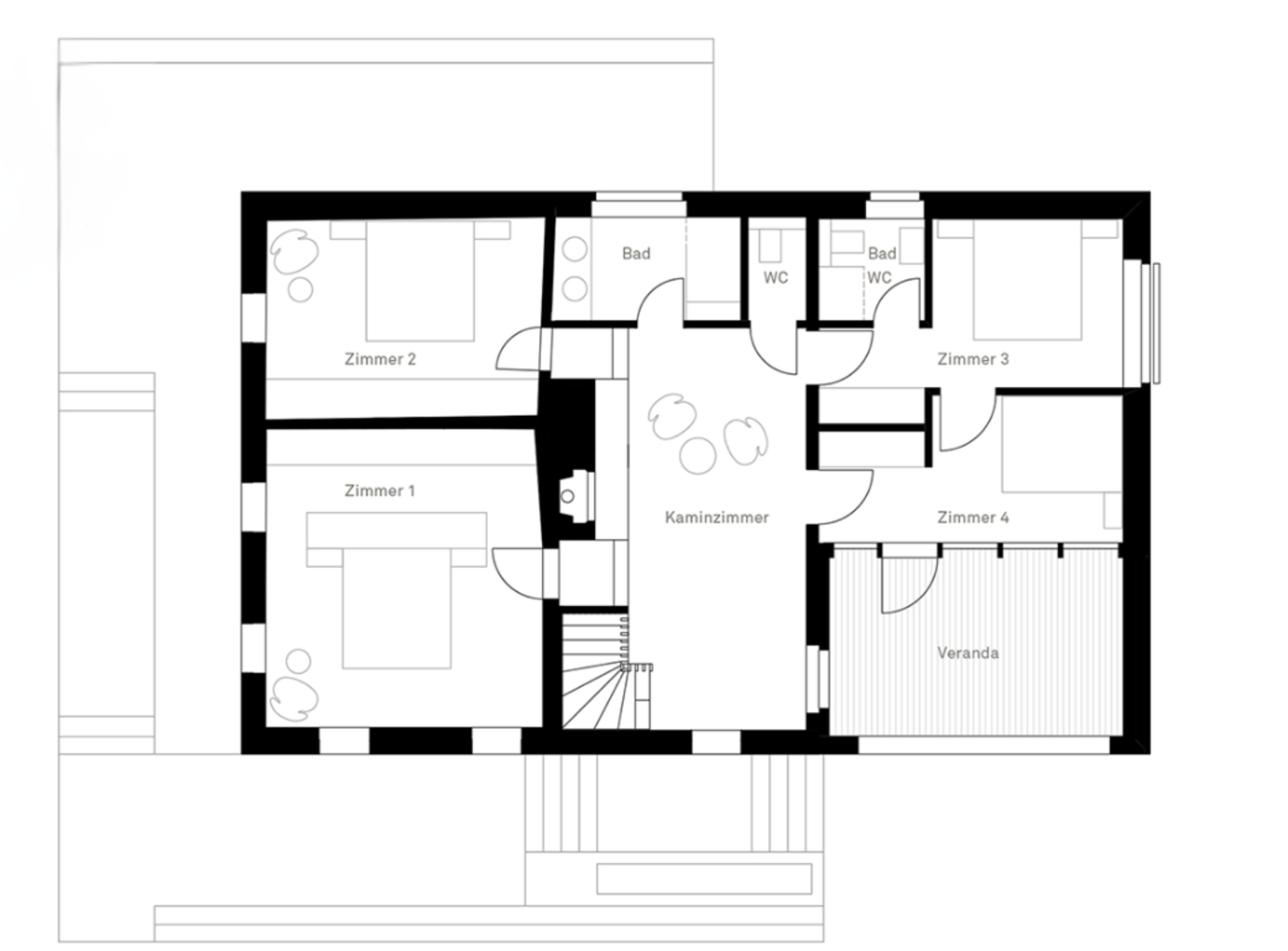 Wenn die Nacht hereinbricht, findet Ihr in einem der vier Schlafzimmer, jedes mit eigenem Bad en suite, die wohlverdiente Ruhe und Erholung. Drei Schlafzimmer befinden sich im Erdgeschoß - das Masterschlafzimmer liegt im ersten Stock.