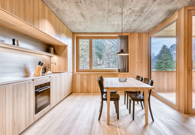 Dieses geräumige Apartment befindet sich direkt am Zusammenfluss des Alvier und Palüdbachs und bietet euch einen beeindruckenden, unverbauten Blick auf die majestätischen Rätikonberge sowie auf Wiesen und Wälder, sowohl im Sommer als auch im Winter.