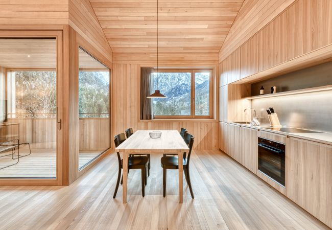 Eine voll ausgestattete Designer-Küche mit Kühlschrank, Geschirrspüler, Herd, Backofen, Kaffeemaschine (Nespresso), Toaster und Wasserkocher erwarten euch. Der offene Essbereich bietet Platz für bis zu sieben Personen. Das gemütliche Wohnzimmer lädt nach einem anstrengenden Skitag oder einer schweißtreibenden Bergtour zum Entspannen ein.